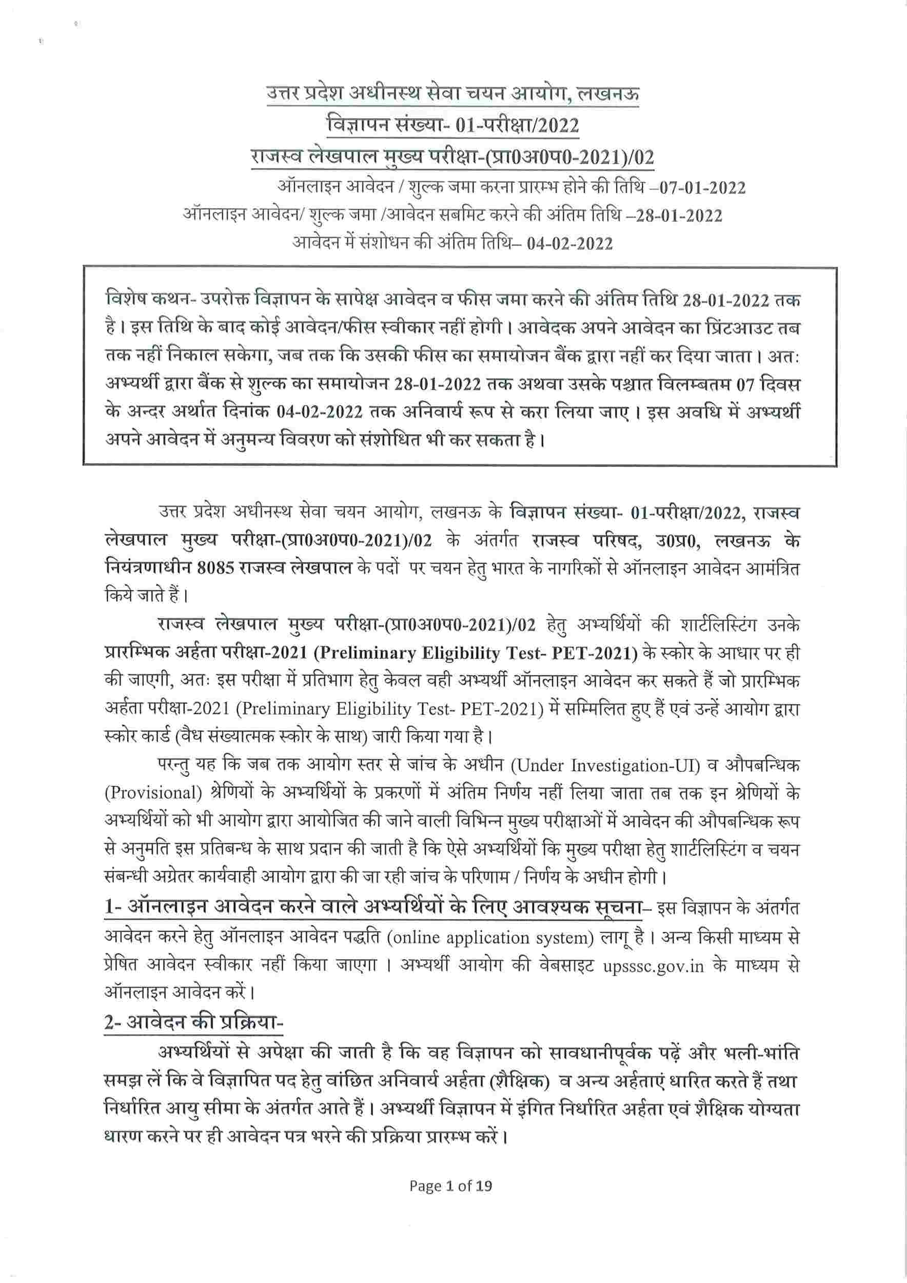 राजस्व लेखपाल 8085 पदों हेतु भर्ती दिशा निर्देश 2022