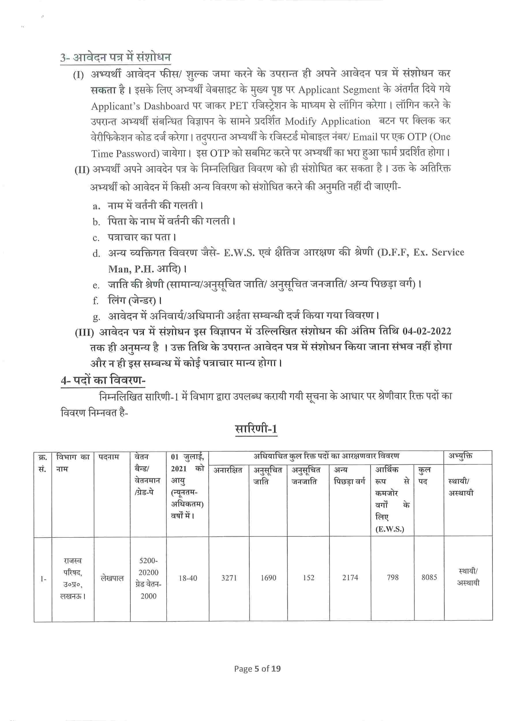 आवेदन ने संशोधन की अंतिम तिथि - 04 -02 -2022